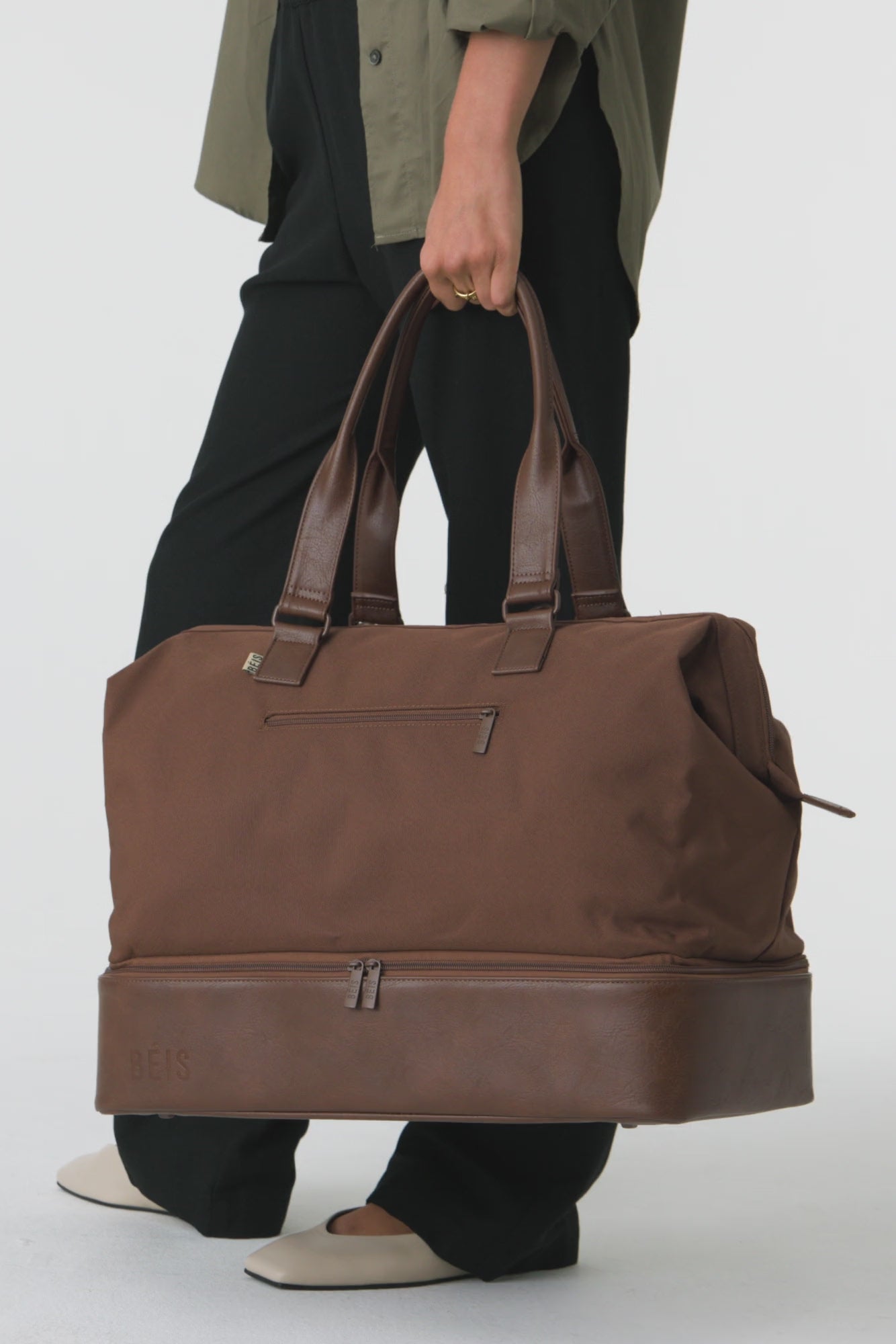 Double zip around bottom compartment with BÉIS metal pull