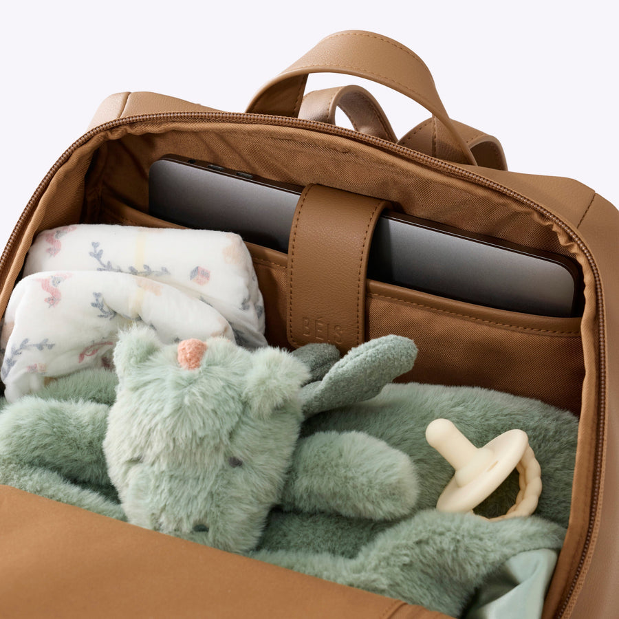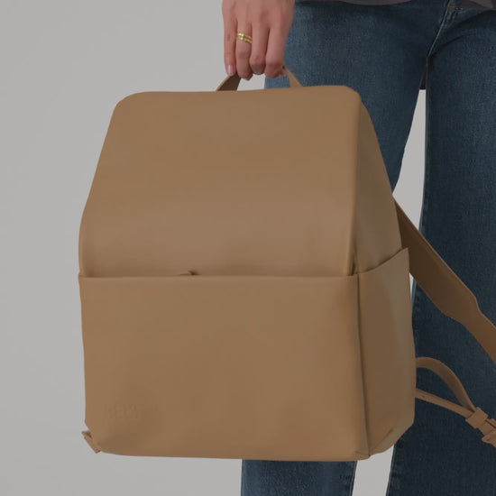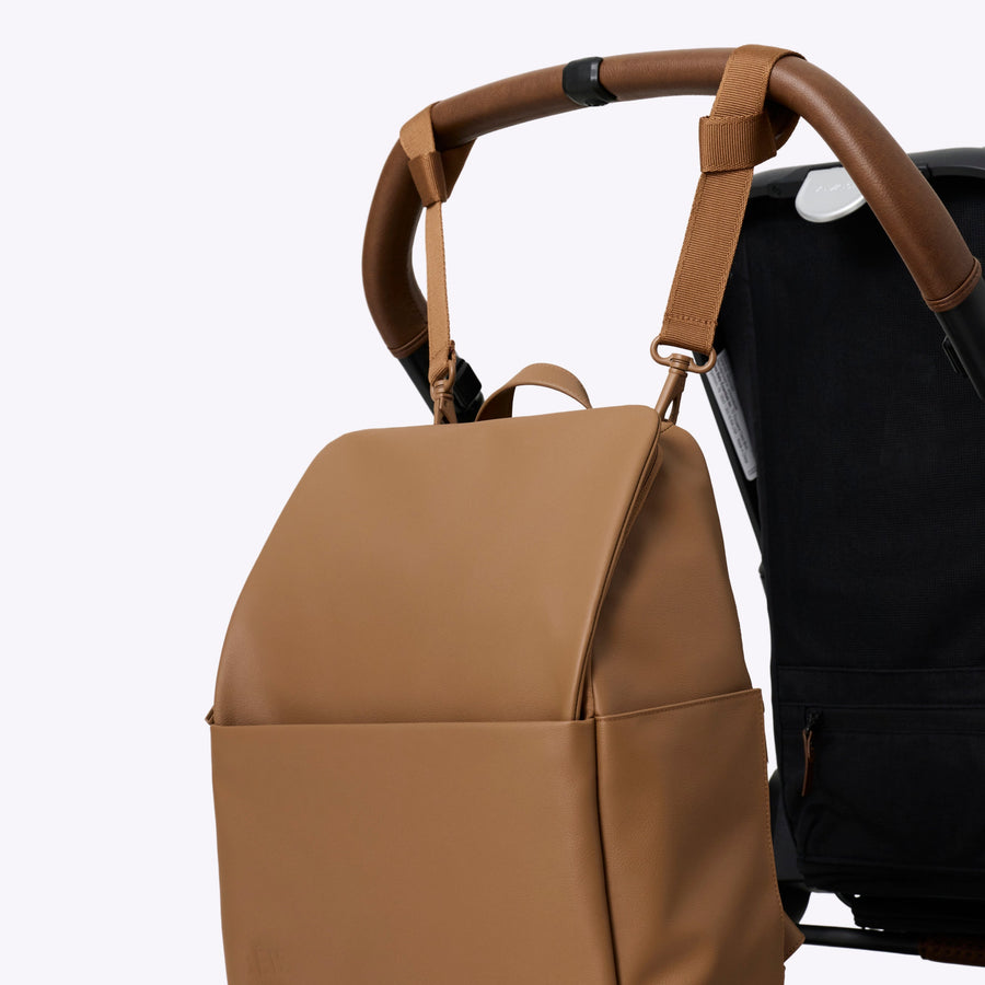 The Everyday Diaper Backpack  in Camel Vegan Leather
