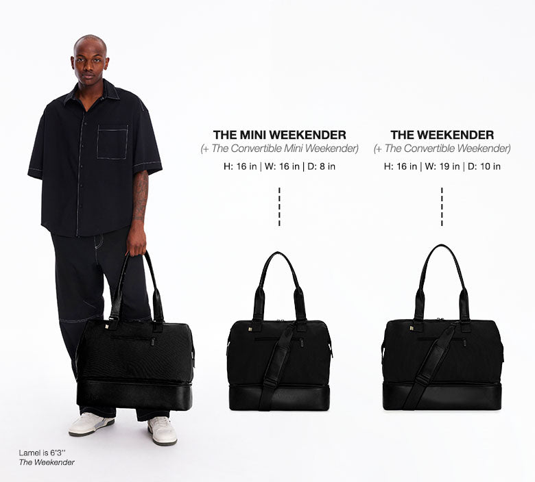 Introducing the mini to our OG weekender. This bag is the minimalists dream and is perfect for your personal item, an overnight trip, or even a weekend away. Take the stress out of packing with a wide easy access opening so you can see everything inside, a built-in padded laptop sleeve, and a separate bottom compartment (perfect for shoes). Ready to go? Simply slide our trolley passthrough pocket over your suitcase handles and you’re off!