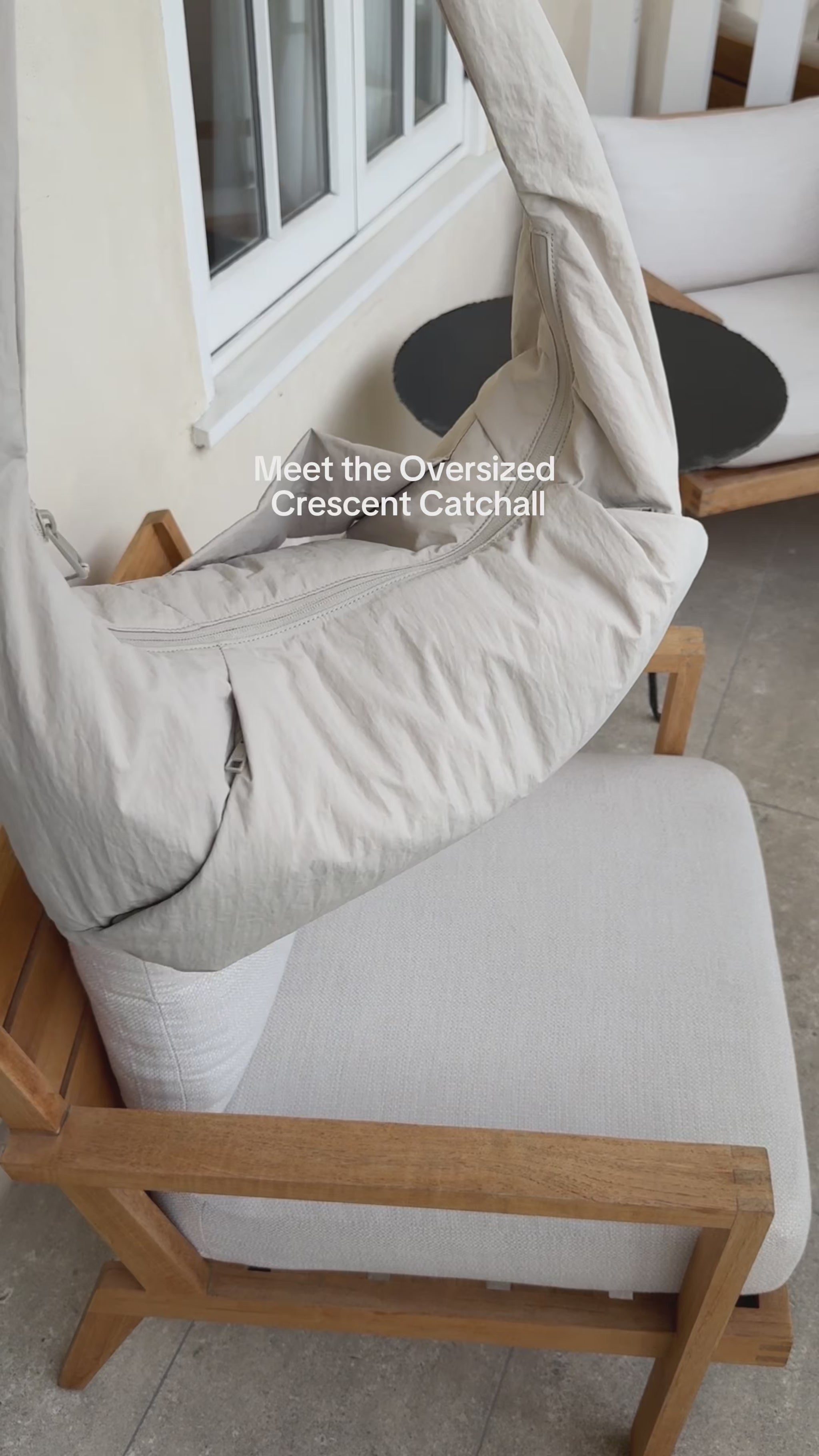 The Oversized Crescent Catchall blends form-fitting comfort with everything-fitting capacity. This roomy crescent-shaped crossbody is crafted in soft puffy nylon with an unstructured silhouette that adapts to your body while holding all your essentials. The adjustable strap lets you wear it as a relaxed crossbody or cinched up over the shoulder—however your day demands.